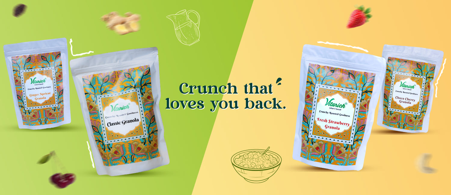 At Vitarich, we bring you snacks that are light, flavourful and good for you. Roasted and not fried for a crisp bite without the extra oil. Made with clean, natural ingredients that are low in fat and gluten-free. Each product is thoughtfully made to support your daily routine, whether it’s breakfast, a work break, or a quick evening bite. No shortcuts, no guilt, just real taste with real benefits. Healthy eating should feel good, and with Vitarich, it always does.