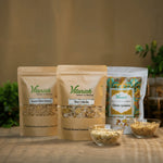 A nutritious take on classic bhel, this mix combines roasted millets and sprouted legumes with bold Indian flavours. Made with jowar, bajra, soyabean, sprouted moong and moth, peanuts, chana, and crunchy chips, it’s seasoned with tamarind, green chilli, and special bhel spices for a flavour-packed crunch.